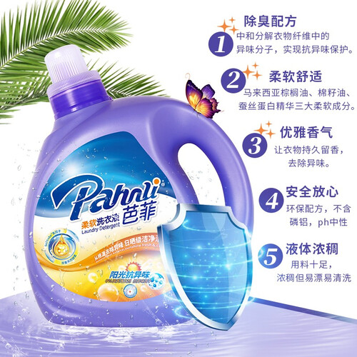 使用了全新的除臭配方设计,能够中和分解衣物纤维中的异味分子,令洗后衣物更清新洁净。并能去除衣物上的异味,散发清新香味。
