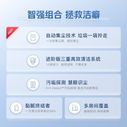 创新自动集尘技术,可以自动清空尘盒,避免脏手。支持定时定区清扫,可以储存规划全屋清扫路线,到点自动启动清洁,更省心。