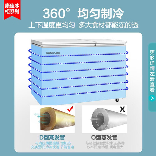 360度均匀制冷,使内部温度分布更加均匀,延长食物储鲜时间。48小时断电保护,停电状态也可以持久保温。