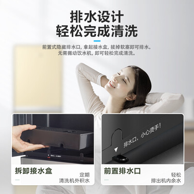 下置式水桶的设计,方便更换水桶,无需费力抬高。严选安心材质,耐高温更耐用,杜绝异味,畅享原始新鲜水。