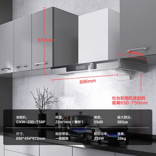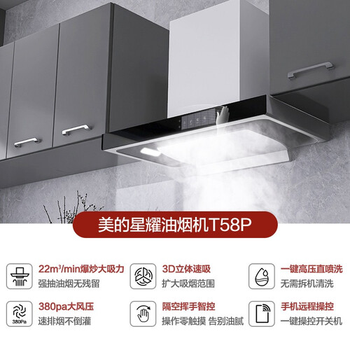 多挡风量随心调节,驾驭多样化烹饪,适合中式厨房,大风压速排,顺畅排烟不呛鼻,四周进风搭配负压大面积,减少油烟逃串。