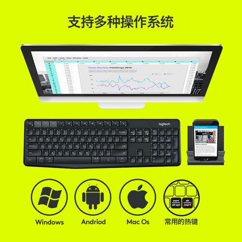 键盘兼容广泛,支持Windows、Mac多种系统使用,办公更便捷。而且按键噪音低,办公不扰人。