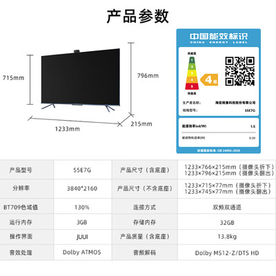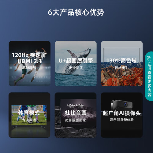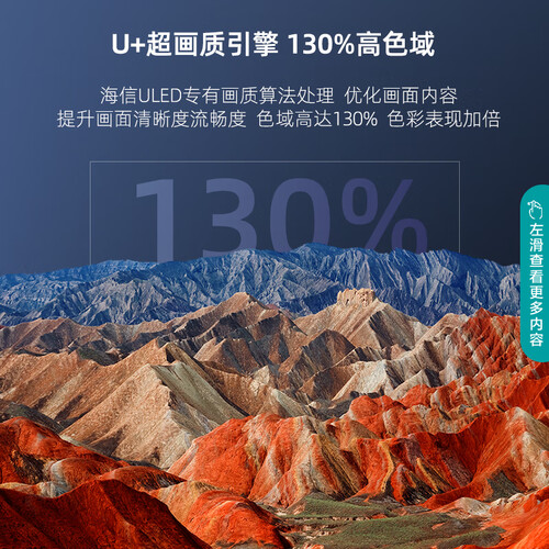 130%高色域,画面惊艳出彩,U+超画质引擎,细腻还原影视故事,还有高标准的体育模式,家人看专业球赛更带劲。