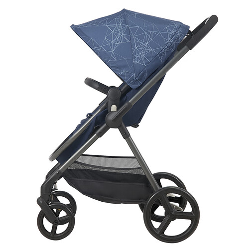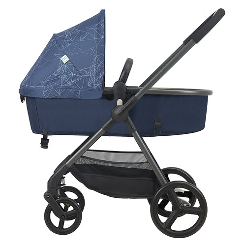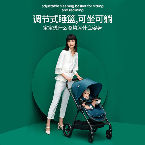 视野高度可达到了85cm,让宝宝远离了汽车尾气。两个前轮搭配了独立避震的设计,让推车更好的减少颠簸。