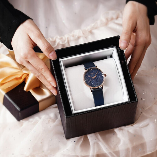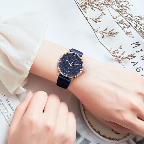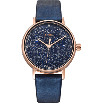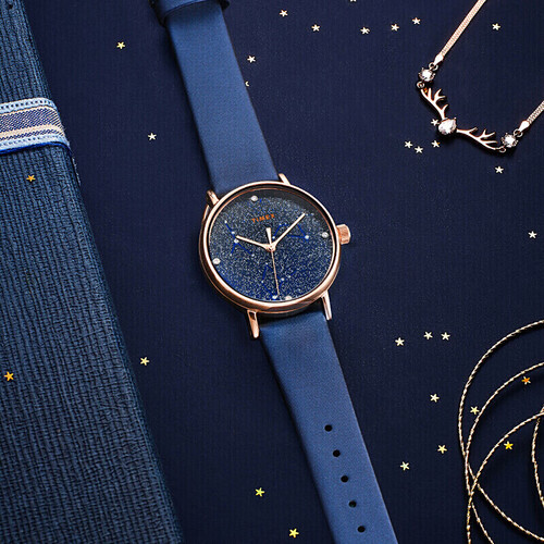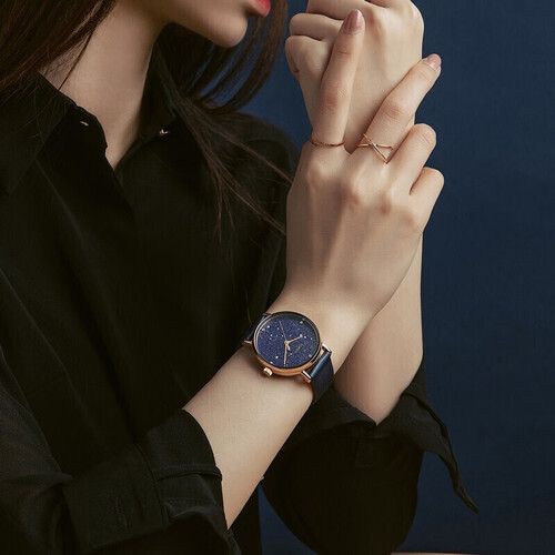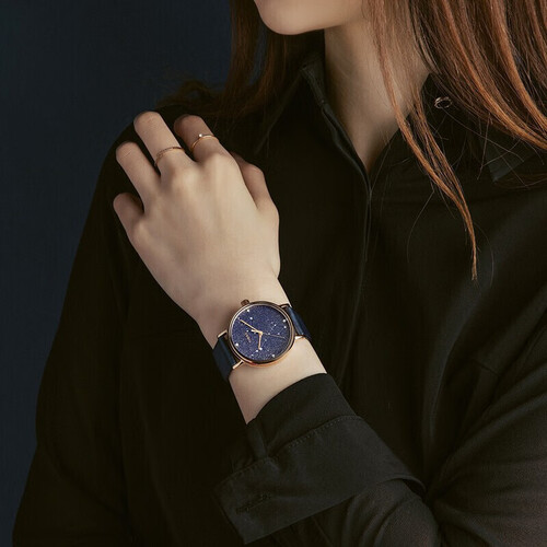散落亮片的星空表盘结合星座元素的点缀,带来丰富的视觉效果,彰显浪漫格调。结合典雅的宝蓝色选色,展现时尚品味。