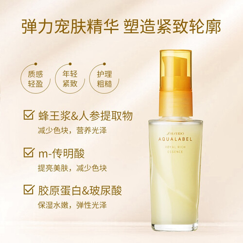 四效合一,质地水润易吸收,养分可以深入护肤快速吸收,肌肤无压力。含有蜂王浆成分,提升肌肤弹性和光泽感。