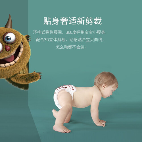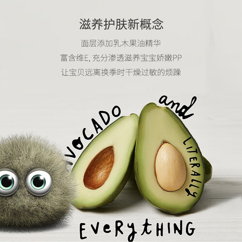 这款纸尿裤面层添加了乳木果油精华,富含维E,充分渗透滋养宝宝娇嫩屁屁。