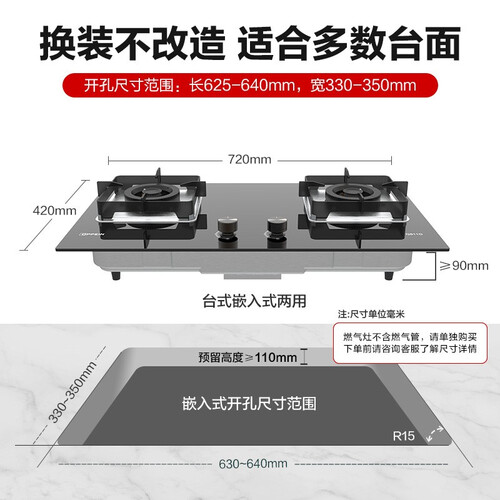 方形聚能锅架,集中热量少流失,烹饪食材快速出锅。直径大火盖设计,热量覆盖面积广,锅中食材不易夹生。