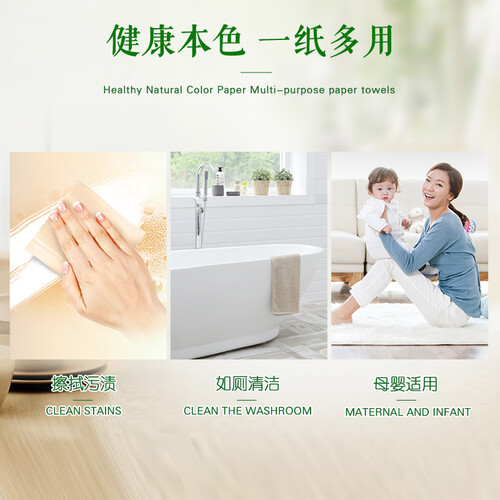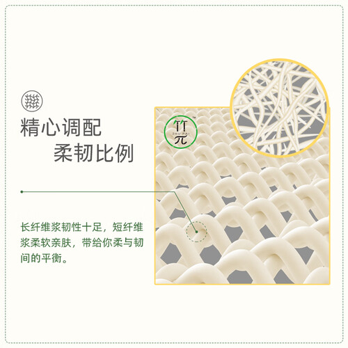 生态萃取竹纤维,可快速吸收水分,遇水不易破。天然无荧光增白,尽显竹本原色。精心调配纸巾柔韧比例,触感亲肤顺滑。