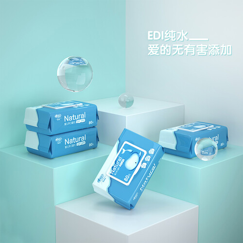经过EDI多重净化过滤工艺,层层净化,亲和幼儿的肌肤,捍卫宝宝的健康;海绵绒材质,柔软有韧性,吸收力更好。