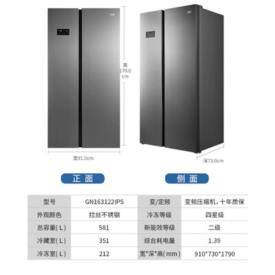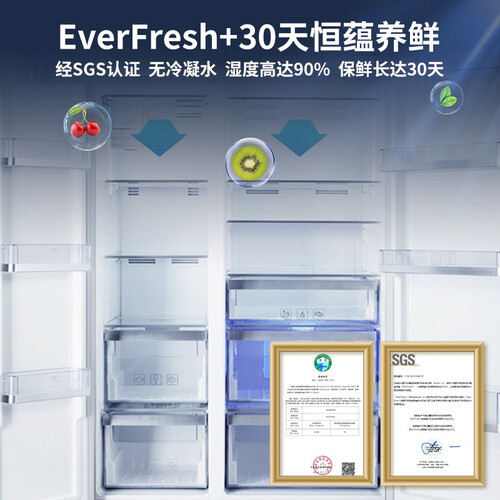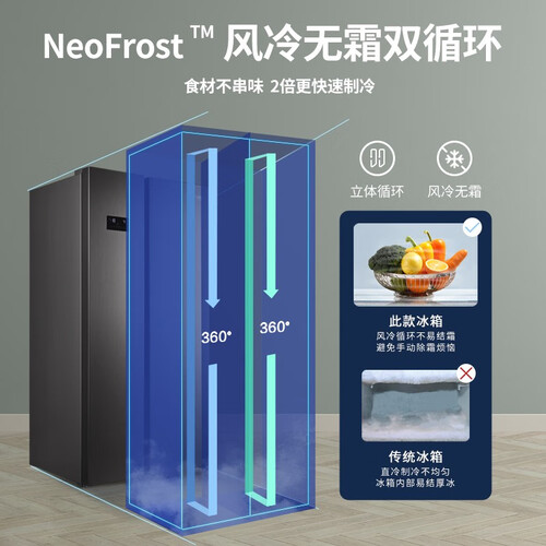 581L大容量,对开门设计,可以科学有序储存,一览无余,拿取更便捷。-25°C快速冷冻,食材水分不流失,美味更健康。