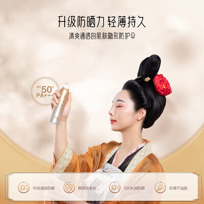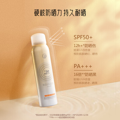 高倍防晒喷雾,一喷尽享阳光;16倍有效防晒,12小时长效防晒,硬核防晒力,抵御光老化;肤感轻薄不油腻,不闷痘。