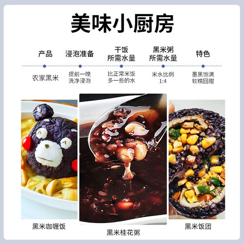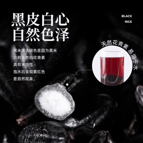 经过多重工序严格挑选,不会出现不合格颗粒。黑米的色泽自然饱满,还带有淡淡的米香,煮熟后的米粒软糯香甜。