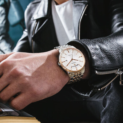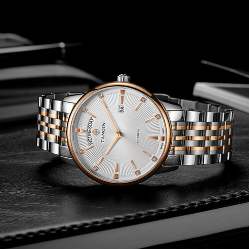 精钢材质的编织表带触感很光滑,佩戴时不易造成肌肤敏感问题。人工合成的蓝宝石表镜耐磨防刮,能为后期养护提供方便。