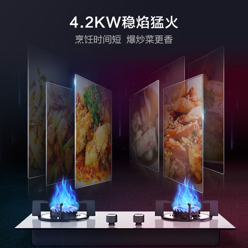 采用旋风匀火技术,可以提高氧气接触面积,火力更聚集,燃烧更加充分。黑镜钢化玻璃面板设计,保障你的使用安全。