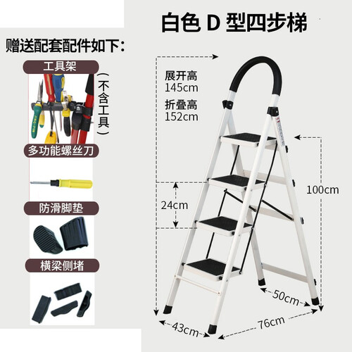 20厘米加宽加大防滑踏板,增加与脚底的接触面积,提高稳定性。添加双重加固横梁,提高梯子稳定性,防止摇晃。