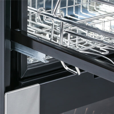 采用滚轮设计,抽拉更轻松流畅,拿放餐具更省力。搭配透视玻璃窗口,餐具直观可视,防烫耐高温,安全有保障。