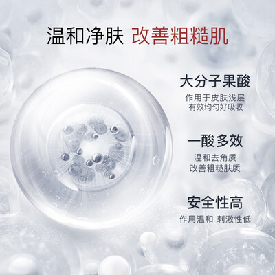 采用杏仁酸6%配方,温和不刺激,有效改善肌肤的不适。蕴含大分子玻尿酸,肌肤表面形成锁水膜,长效补水。
