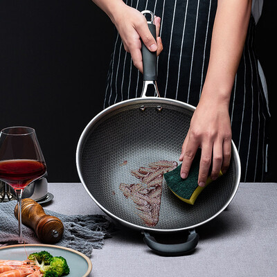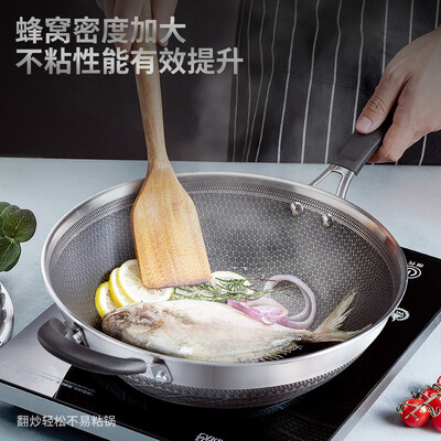 采用三层钢材质,不怕刮蹭,精细光刻经纹,纹理覆盖锅内,让锅具持久如新,开放式蜂窝设计,少油轻烟,做饭更加健康美味。