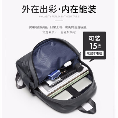 内里多个隔层袋,充分利用空间。黑灰拼色外观,时尚潮流感设计。
