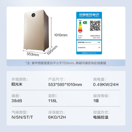 美的 一级能效单温母婴冰柜