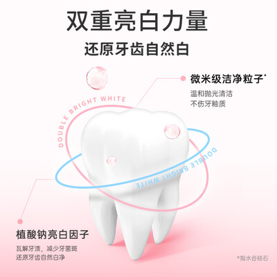 法式调香大师精创调香,蕴含1亿香氛粒子,萦绕在唇齿间顷刻释放清新口气;微米级洁净粒子和植酸钠亮白因子,抛光清洁瓦解牙渍。