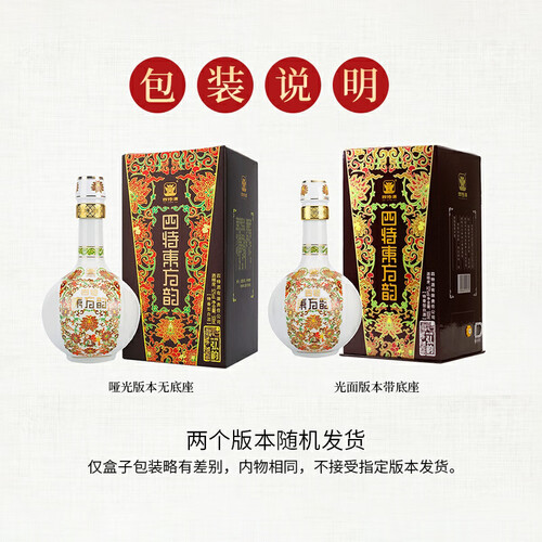 瓶身精致花纹设计,包装大气尽显品质,逢节团聚的送礼优选。优选糯红高粱为原料,以纯净水源酿造,口感柔和协调格外醇香。