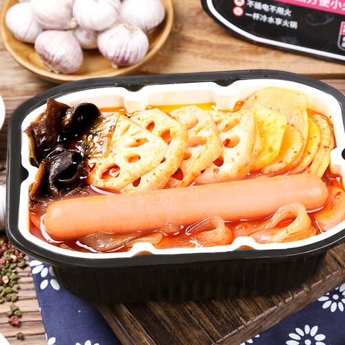 入口鲜嫩,每一份食材都包裹着汤汁,竹笋更是酥脆可口。荤素搭配营养充盈,在空调房来一份热气腾腾的自热锅,好不自在。