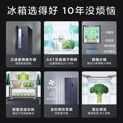 精细分储空间,食材分类摆放,令家庭主妇不为屯储年货而困扰。智慧变温空间,为生鲜食材打造适宜存储环境,延长保鲜时间。