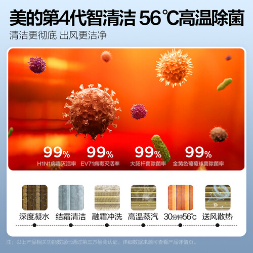 具有一键智控温功能,恒定温度少温差,开启后室内温度更加舒适。搭载第四代自清洁功能,内部不会藏匿污垢,释放清新的空气。