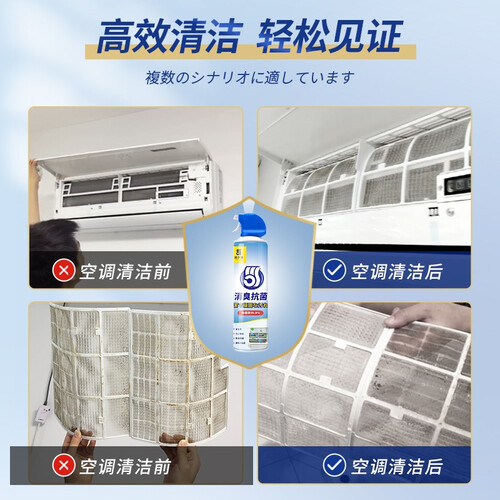 泡沫免拆洗设计,去污速度快,清洁效果好,自己在家即可轻松完成;含有茶树精油成分,有效去除空调异味,打造健康的居家空间。