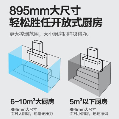 顶部和侧部都设有进风口,能够多向吸除油烟。内置塑封电机,具有防水、防电、防油、防尘、防腐蚀功能,经久耐用。