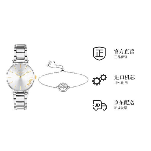 采用银色主色调点缀金色刻度和指针,简约时尚又清新雅致。日辉纹表盘展现光束般散射质感,配套的手链设计简洁又百搭。