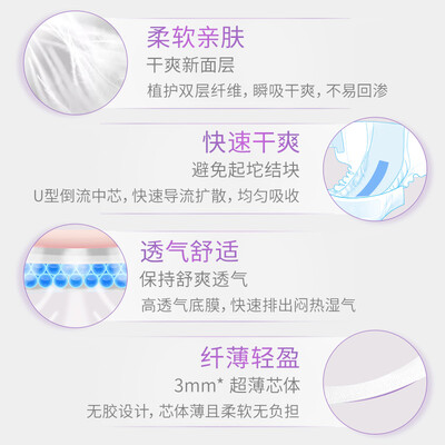 创新干爽表面层设计,确保较高透气性的同时,还能有效导流引渗,促进吸收。U型导流中芯,快速吸收尿液,不易断层。
