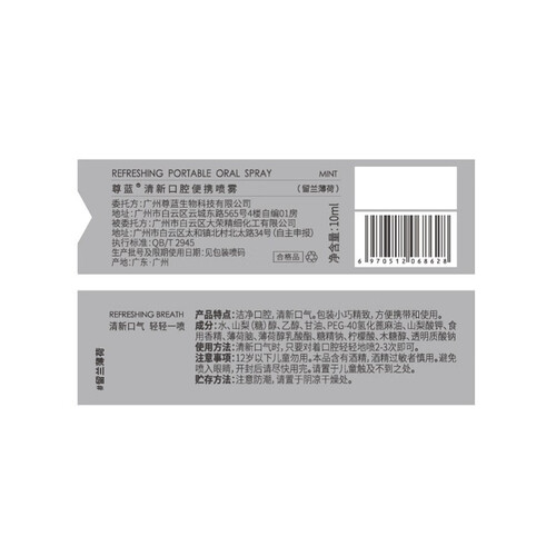 尊蓝 清新薄荷味口喷