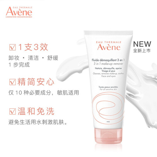 精简成分不会刺激肌肤,乳液质地无需冲洗,卸妆清洁一步到位,富含活泉水成分,舒缓肌肤减少刺激。