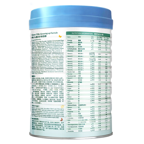 纯山羊乳配方,不添加牛乳成分,亲和人体,呵护宝宝身体健康;添加益生元和益生菌,改善肠道环境,助力消化吸收。