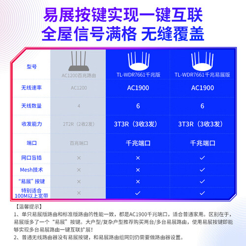 采用AC双频3T3R架构,适配市面上所有笔记本和台式电脑。接收信号灵敏,传输安全且有效率。易展按键,一键互联。