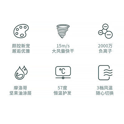 这款吹风机风速强劲,干发快准狠,早起造型不再成为心结,输出2000万负离子,中和静电,让秀发柔顺亮泽。