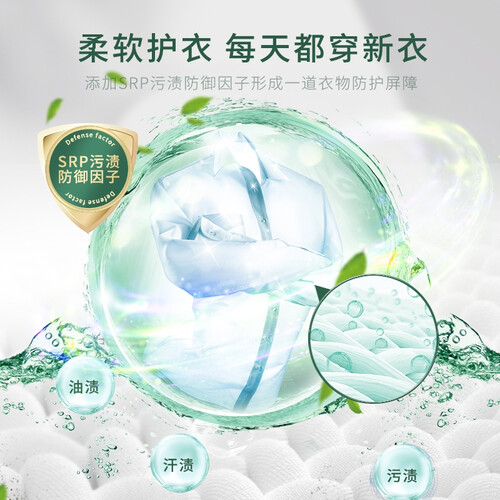 特别添加SRP因子,可起到防御污渍二次附着的功效,持久保持洁净清新;精选天然植萃精华,不损伤衣物质感,贴身穿着始终柔软。