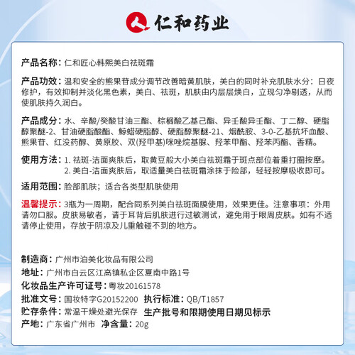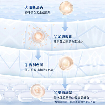 蕴含熊果苷精华,加速黑色素的分解与排泄,有效改善肤色;同时具有较好的滋润效果,肌肤更加细腻水润。