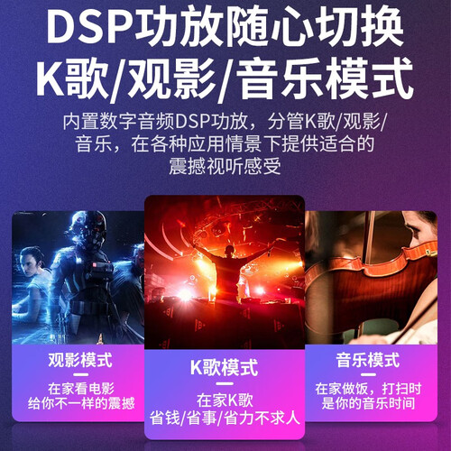 采用影院级音效环绕立体声场,看大片听音乐,给你不一样的听觉享受。同时内置数字音频DSP功放,可提供适合的震撼视听感受。