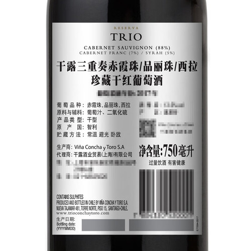 干露赤霞珠西拉干红葡萄酒
