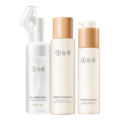 氨基酸洁面,在清洁的同时可以滋润肌肤,保湿不紧绷。光甘草提取物,能够减少肌肤的黄气,让肤色更均匀。