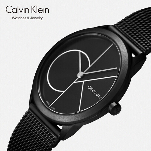 CK 简约黑盘石英手表