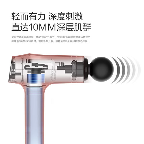 轻盈机身设计,轻松手持按摩不费力。采用双轴承转动结构,大功率无刷电机,提供澎湃动力,让按摩舒适感席卷每一处肌肉。