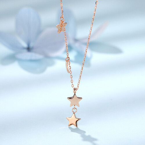 项链中加入星星与月亮的设计,增添梦幻感,佩戴后愿你一路都有星月相伴。项链可调节长短,闪耀颈间彰显魅力。