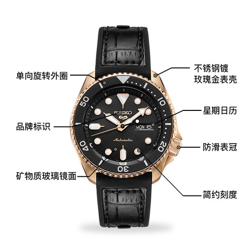 单向旋转表盘设计,潜水时可计算氧气瓶可持续时间,保障水下安全性,潜水爱好者好搭档。皮革与硅胶巧妙结合的表带,柔软贴合。