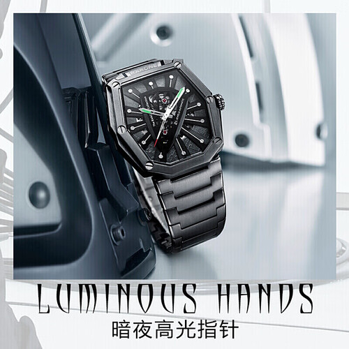 异棱角表盘致敬未来主义,八边形切割打破传统,令时髦型男一眼倾心。暗夜高光指针,身处黑暗也有光明相伴,尽显炫酷前卫格调。