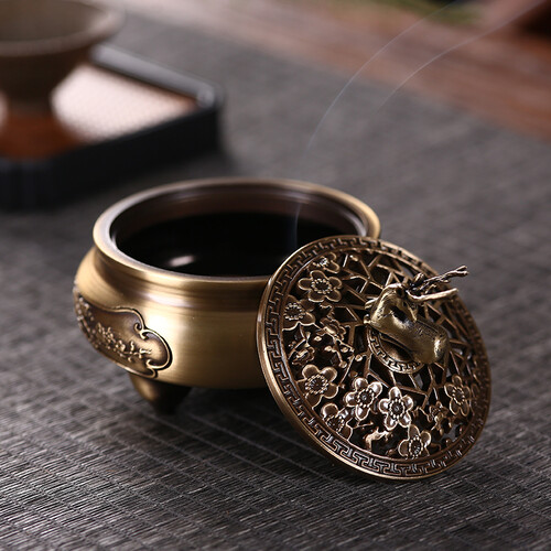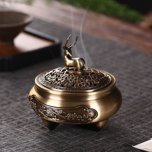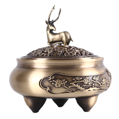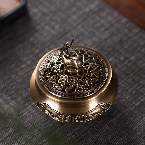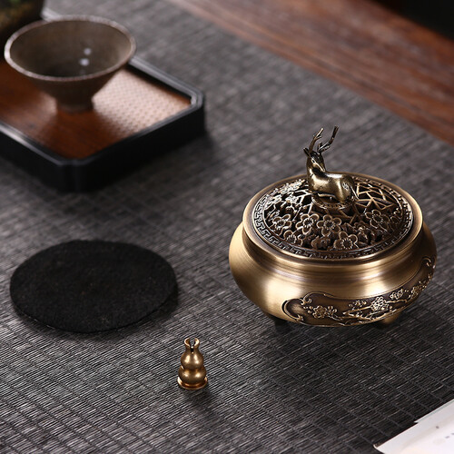 采用了梅花鹿造型的盖子,带有一路有你的美好寓意,送人可以表达心意。炉身雕刻有梅花图案,线条流畅自然。